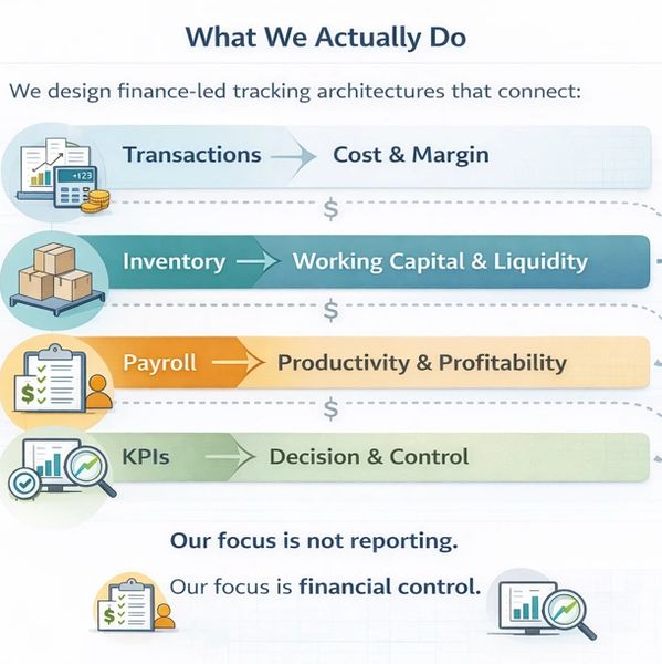 Most product-driven organisations operate with fragmented visibility — inventory in one place, costing in another, payroll somewhere else, and KPIs disconnected from financial impact.